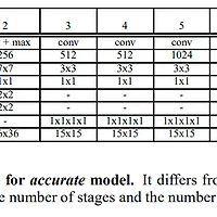 저자는 Darknet-19라는 새로운 Classification Model을 제안합니다. 잘 알려진데로 큰 사이즈의 kernel filter가 3x3 filter와 여러 layer를 이용하면 큰 크기의 kernel filter가 대체될수 있다고 해서 3x3 filter kenel을 사용하고, Network in Network 논문을 따라서 global average pooling을 사용해서 예측할 뿐만 아니라 1x1 filter를 사용해서 3x3 convolution feature map을 압축하는 방식을 사용하고, batch normalization을 사용해서 regularization을 했다고 합니다. 이렇게 Darknet 19라는 모델을 만들었고 이는 19개의 Convolutional layer와 5개의 pooling layer로 이루어져있는 네트워크입니다. 학습시 weight decay fator는 0.0005를 사용했고 momentum은 0.9, SSD와 유사한 방식의 data augmentation인 random crop, color shifting 등을 사용했다고 합니다.
